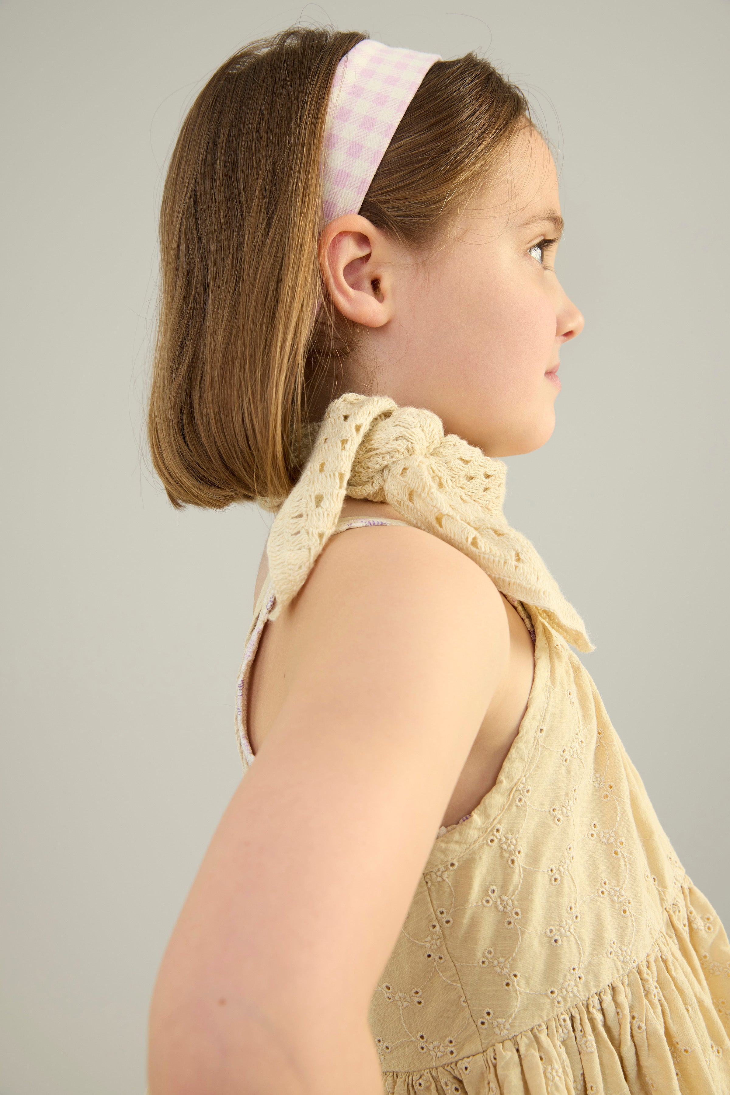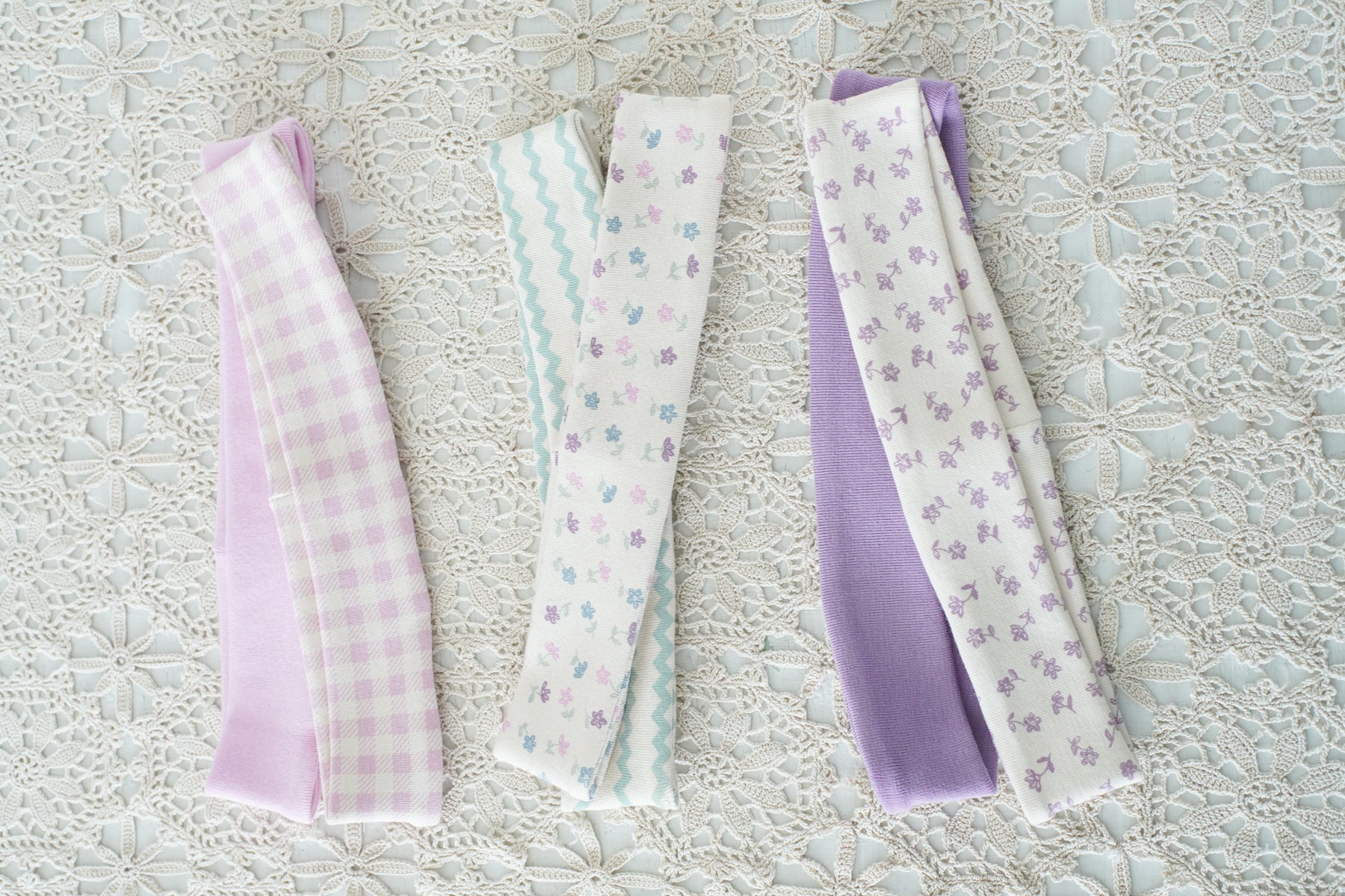 Stretchy knit headband set in printed and solid organic pima cotton.