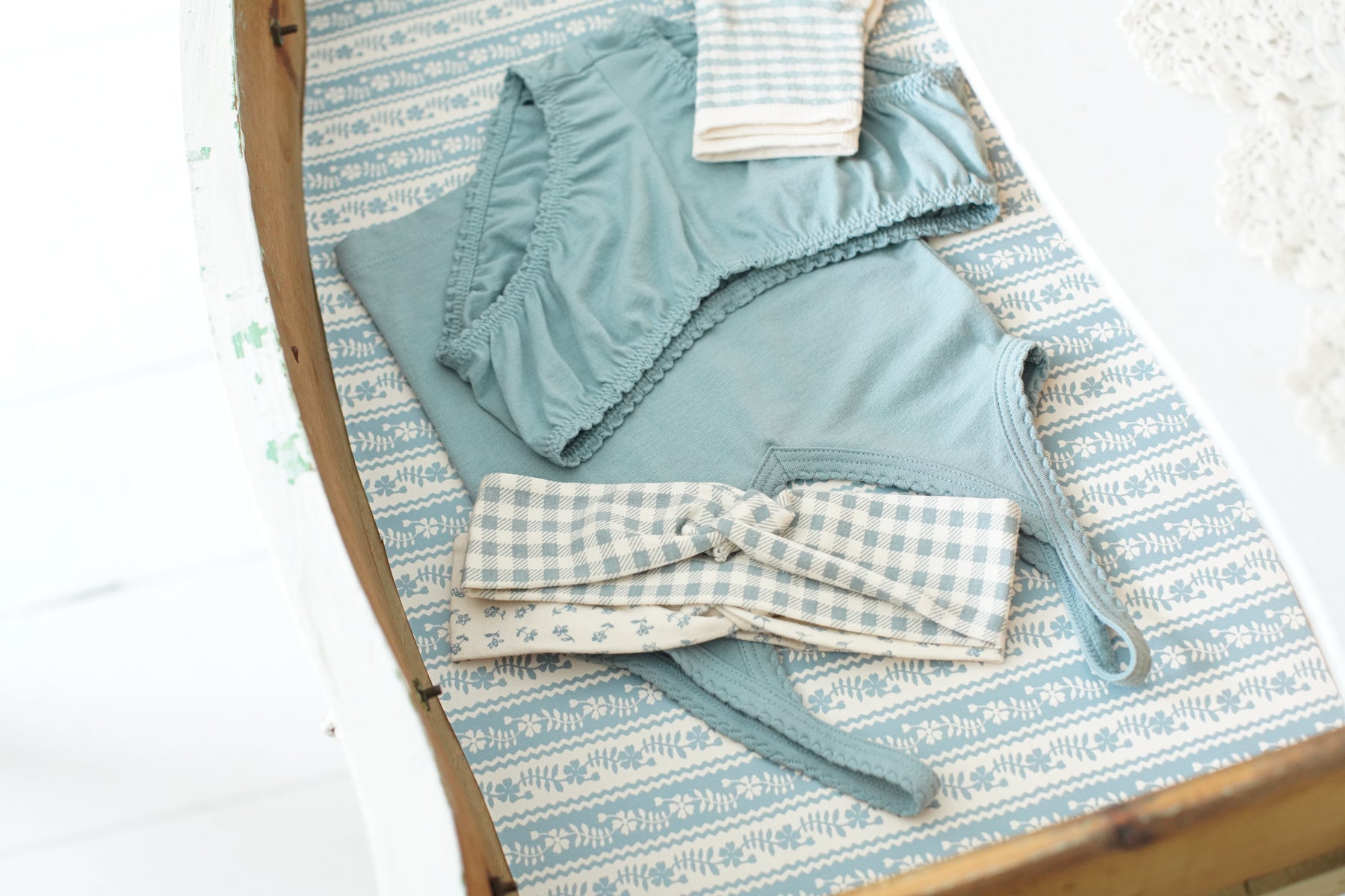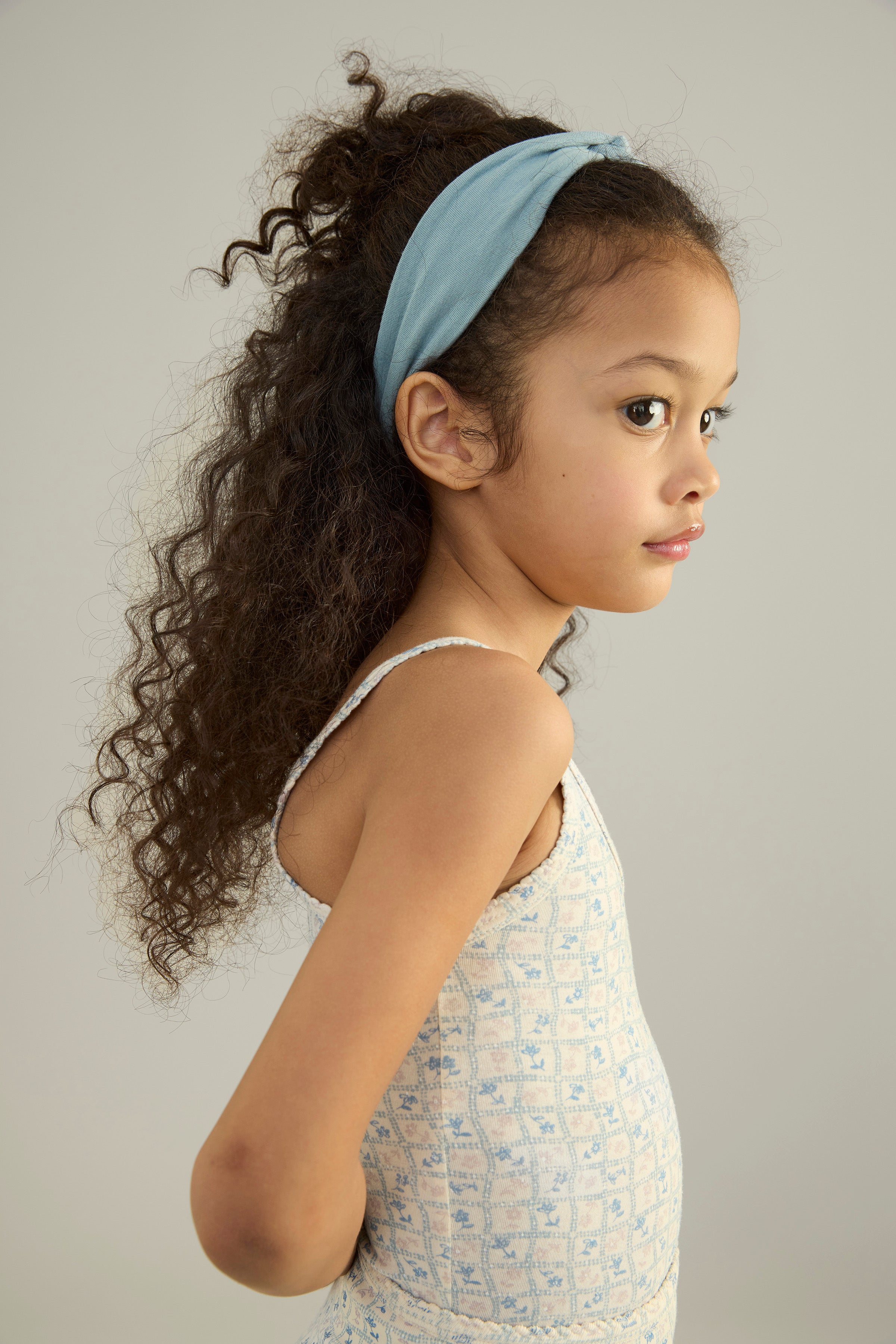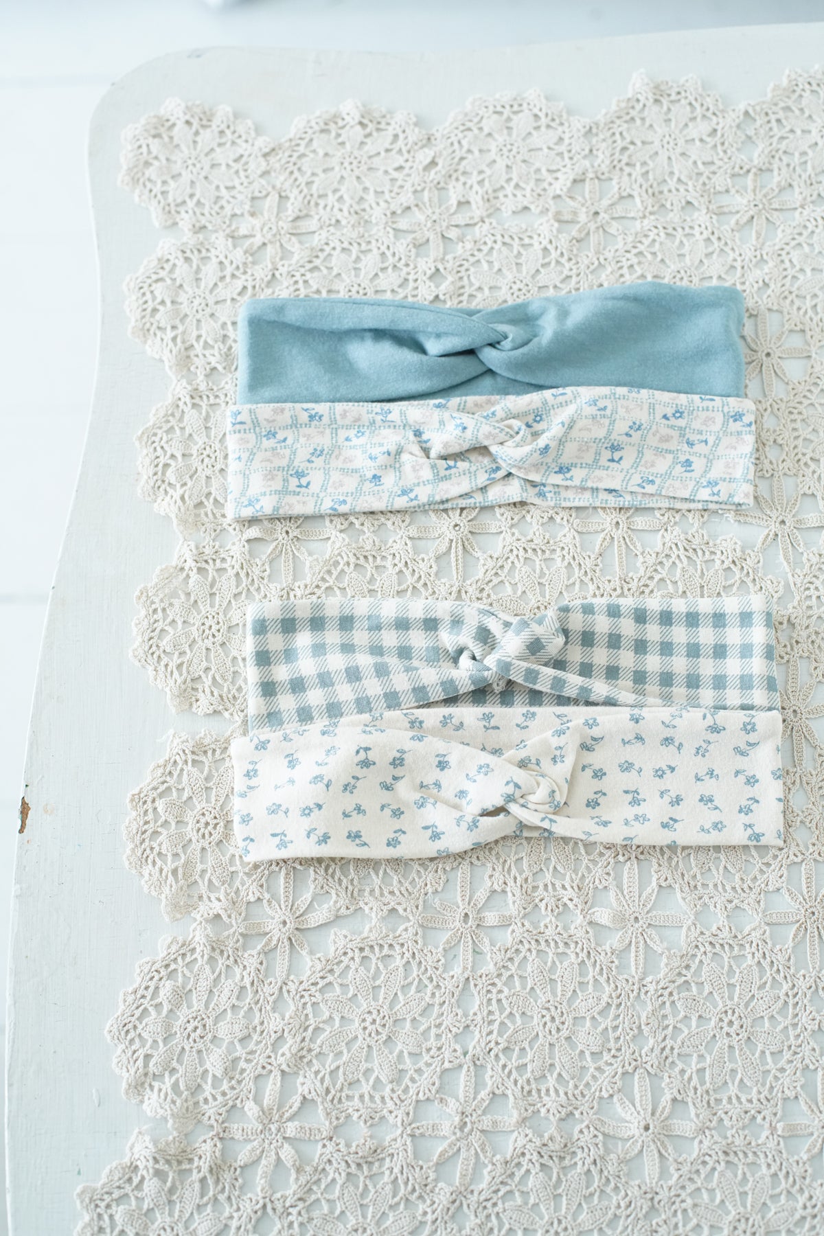 Stretchy knit headband set with a twist, in printed and solid pima cotton blend.